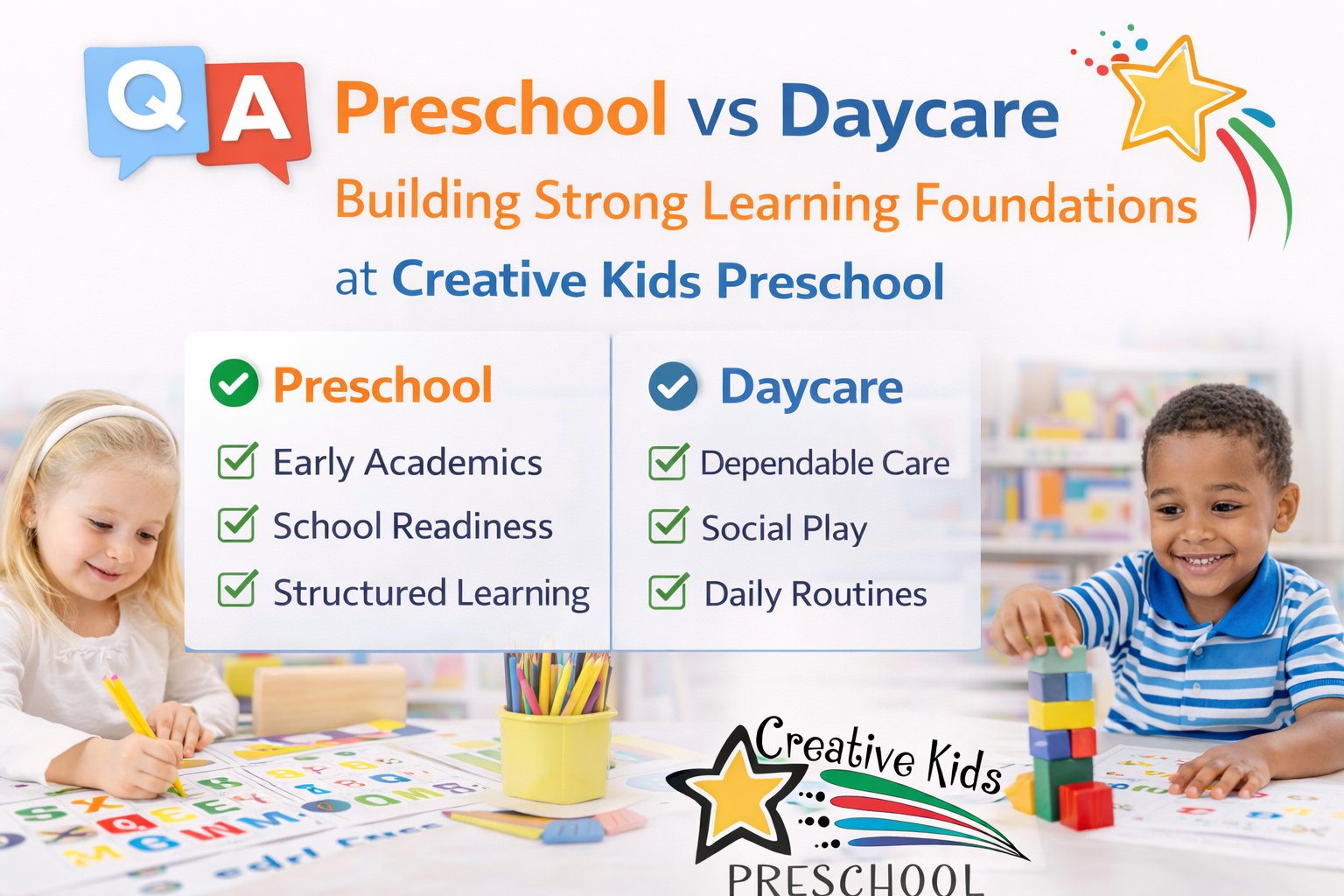 Preschool vs Daycare: Building Strong Learning Foundations | Creative Kids Preschool Tucson